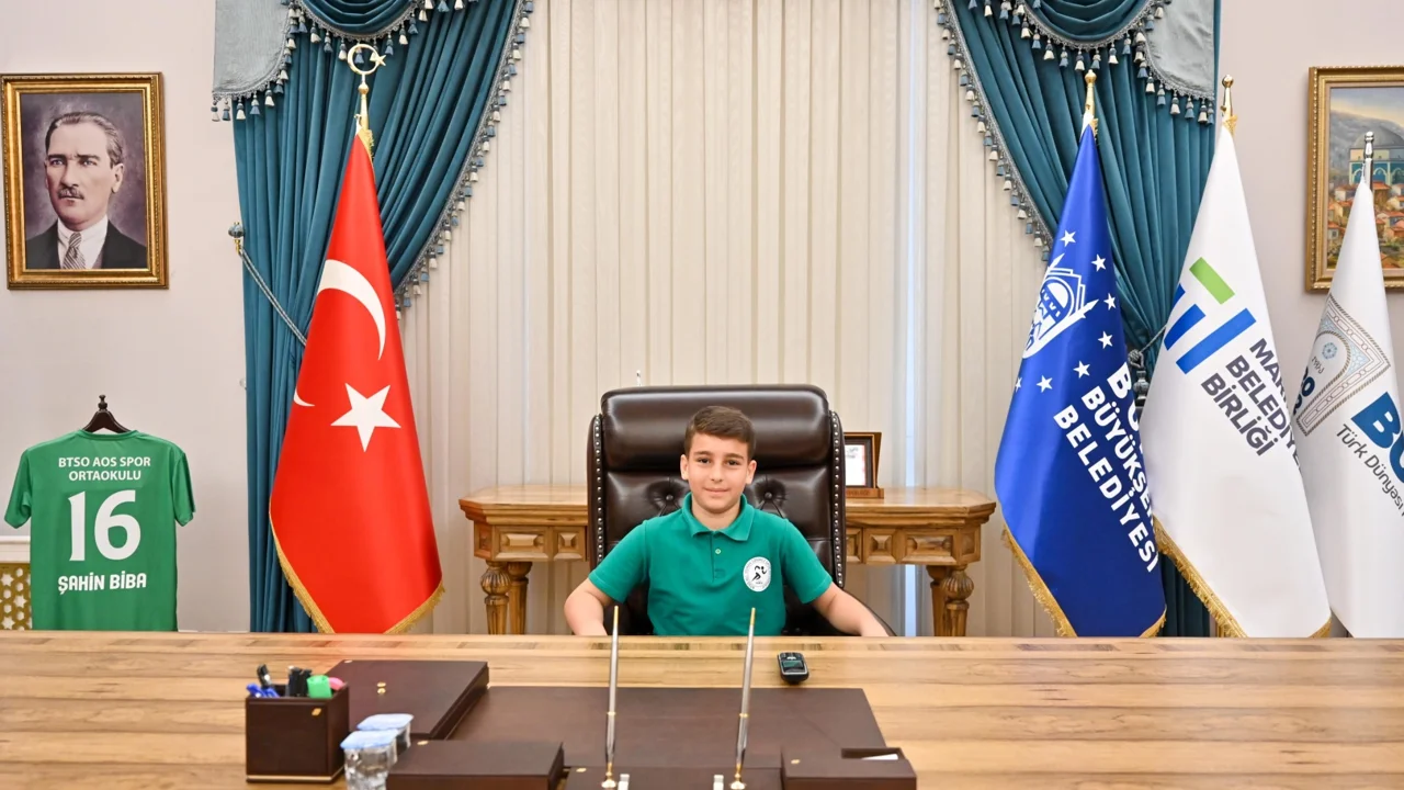 Geleceğin büyükleri, başkanlık koltuklarını devraldı. Bursa Büyükşehir Belediye Başkan Vekili Şahin Biba da koltuğunu BTSO Ali Osman Sönmez Spor Ortaokulu öğrencileri Ömer Akif Avcı, Gökçe Betül Sevinç ve Lina Ravalı'ya devretti. Bursa Büyükşehir Belediyesi Tarihi Binası'nda düzenlenen devir teslim töreninde, geleceğin başkanlarına okul müdürü Selahattin Özkan ve sınıf öğretmeni Ömer Akgül eşlik etti.
