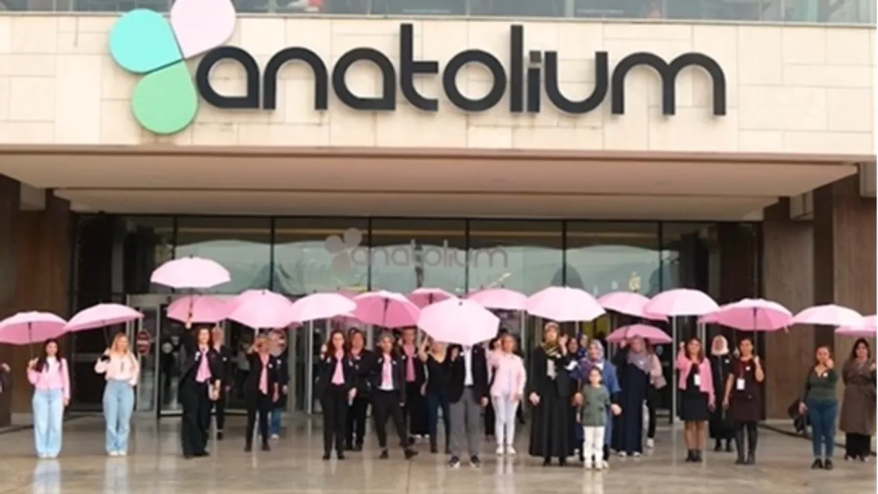 BURSA (İGFA) - Anatolium AVM'de, Osmangazi İlçe Sağlık Müdürlüğü iş birliğiyle gerçekleştirilen Meme Kanseri Farkındalık Etkinliği kapsamında, kadınlar pembe şemsiyelerle yürüdü, erken teşhisin önemini bir kez daha hatırlattı.
