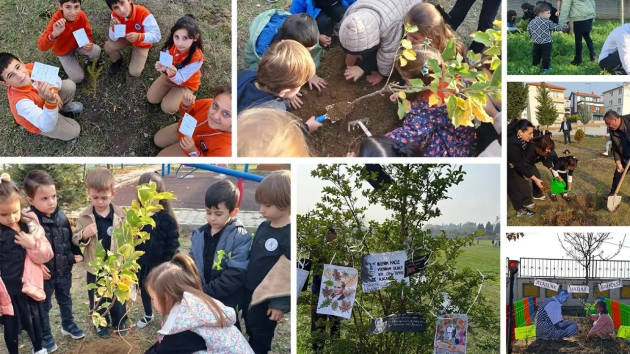 Milli Eğitim Bakanlığı'na bağlı 81 ildeki okullarda düzenlenen etkinliklerde öğrenciler, Atatürk ve vatan sevgisine ilişkin mesajlarını yerleştirdikleri fidanları toprakla buluşturdu.