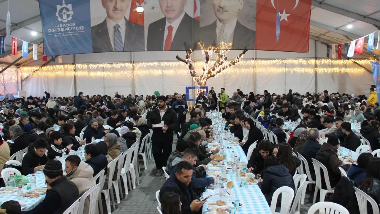 Kocaeli Büyükşehir Belediyesi'nin Gebze Kent Meydanı'nda kurduğu Ramazan çadırı, son iftara kadar misafirlerini ağırlamaya devam edecek. Bereketli iftar sofralarında buluşan vatandaşlar, paylaşmanın ve dayanışmanın sıcaklığını Ramazan'ın son gününe kadar yaşamayı sürdürecek.