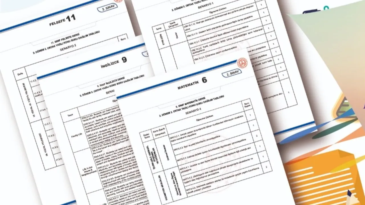 Yayımlanan örnek tablolar, sınavlarda ölçülecek konu/kazanım/öğrenme çıktılarının soru sayılarının ve dağılımlarının dengeli biçimde planlanmasına katkı sunarak il-ilçe ve okul düzeyinde yapılacak ortak sınavlarda hazırlanacak dokümanlara referans niteliği taşıyor.