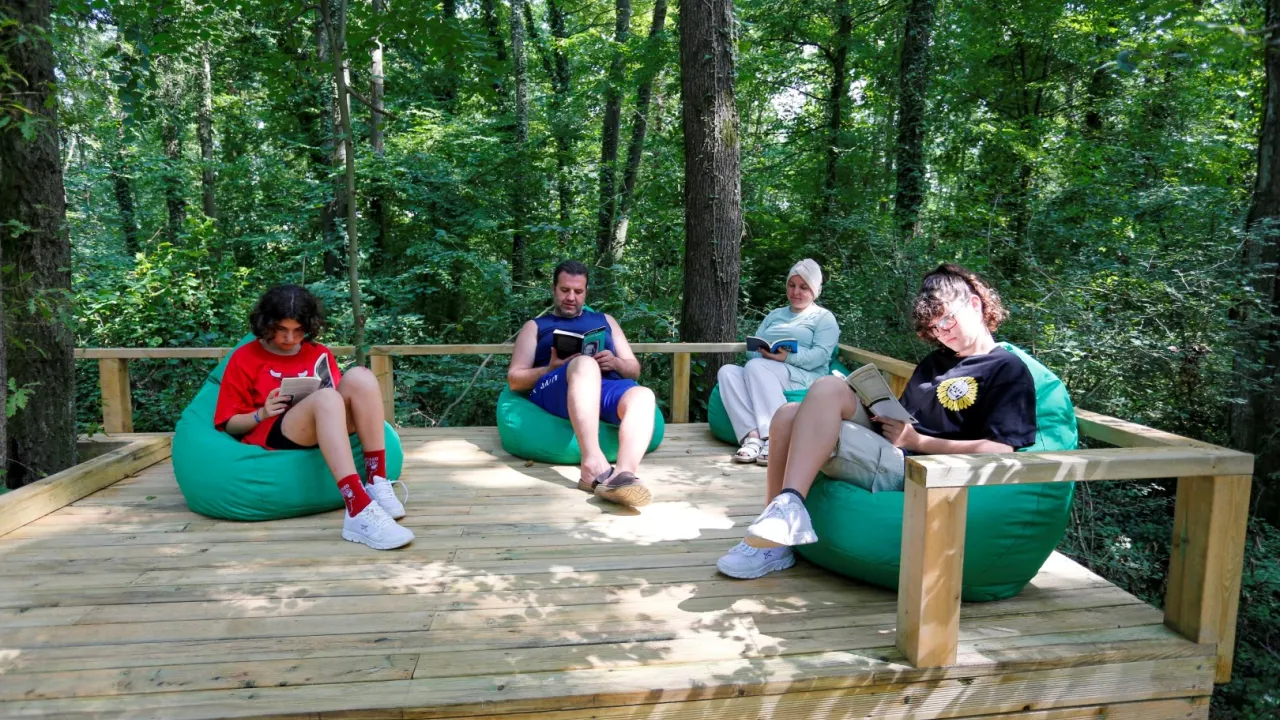KOCAELİ (İGFA) - Türkiye'nin ilk Orman Kütüphanesi olma özelliğini taşıyan bu alan, ormanın büyülü atmosferinden kitabın derinliklerine uzanan eşsiz bir yolculuk sunuyor. Yaklaşık 200 kişi kapasiteli kütüphane, huzurlu ortamı ve konforlu okuma alanlarıyla kitapseverlerin vazgeçilmez adreslerinden biri haline geldi. Bu yönüyle Orman Kütüphanesi, ziyaretçiler tarafından Ormanya'nın en özel duraklarından biri olarak görülüyor.