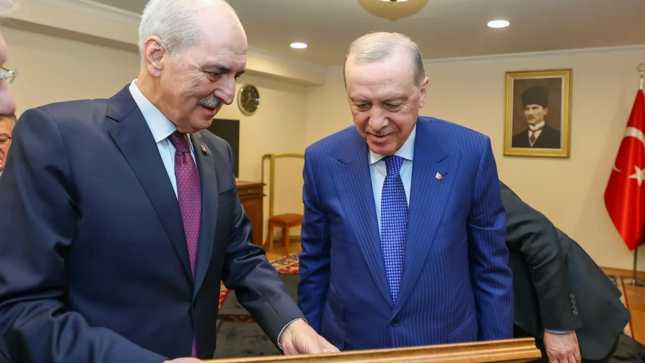 TBMM Başkanı Numan Kurtulmuş, Cumhurbaşkanı Recep Tayyip Erdoğan'a, merhum TBMM Başkanvekili Sırrı Süreyya Önder ile Erdoğan'ın geçen yıl düzenlenen iftar programında çekilen bir anı fotoğrafını takdim etti.
